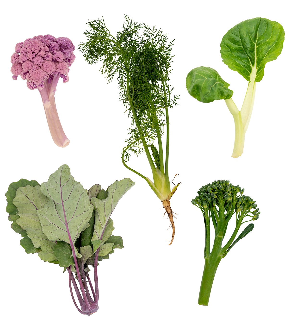 Ein farbenfroher Mix mit ausgewähltem, feinstem Gemüse. Unser klassischer Weißer Blumenkohl in Symbiose mit seinem pinken Bruder und dem Wilden Romanesco.