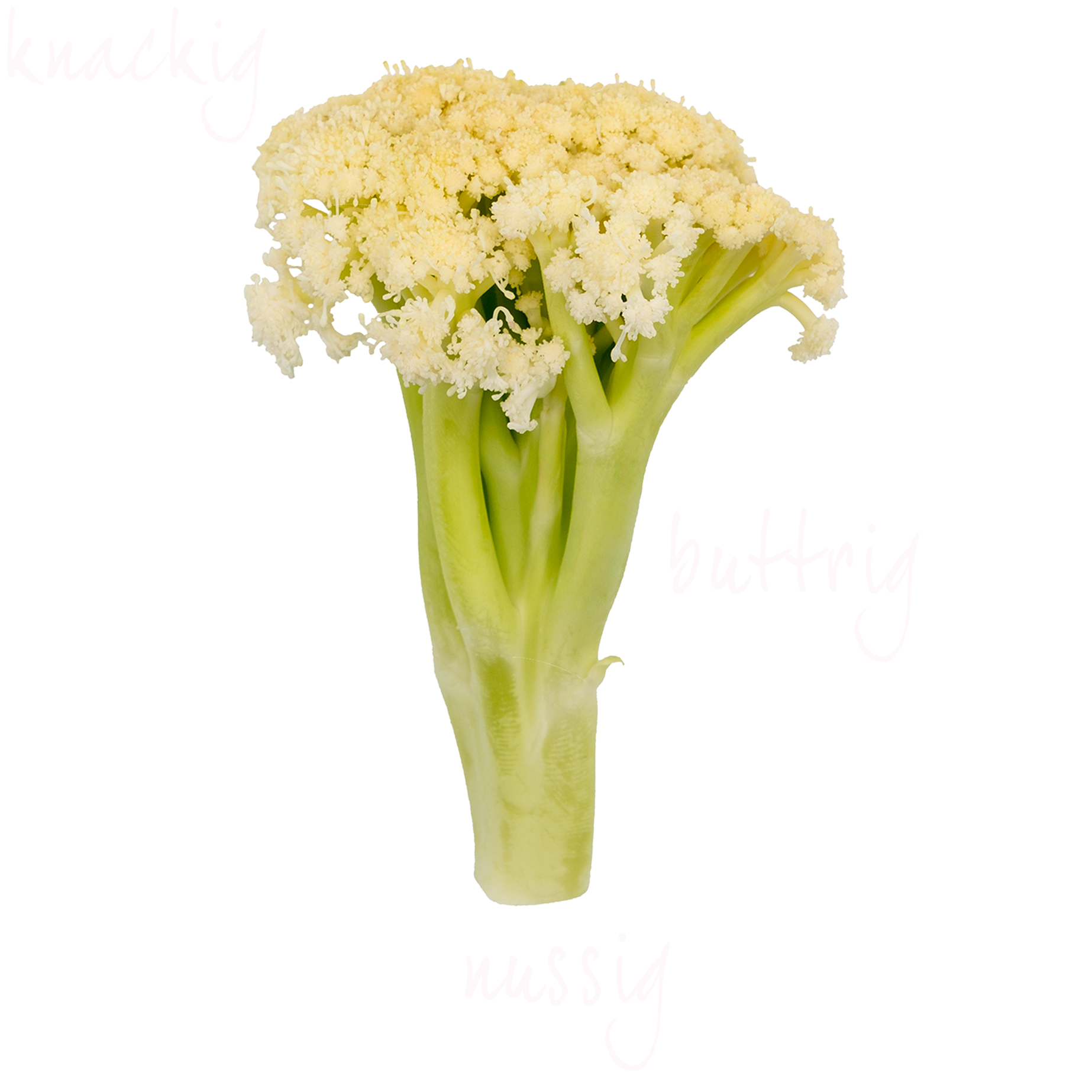 Als erfahrene Gärtner können wir unseren wilden Blumenkohl sogar ganzjährig liefern. Roh oder halb durchgegart serviert ein Genuss, der restlos glücklich macht.